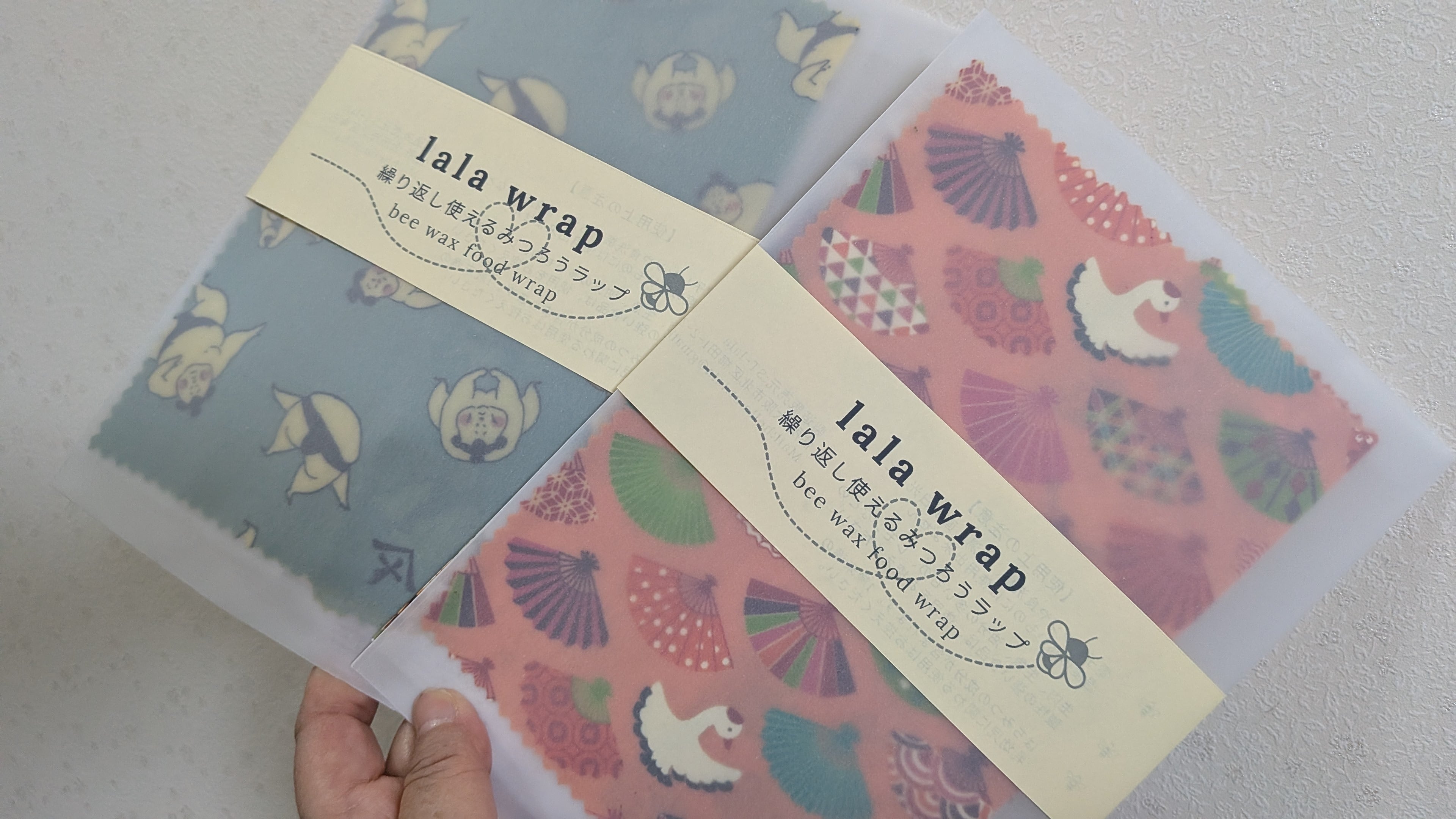 プリント柄は、裁断により掲載写真と柄の出方が異なる場合がございます。また、蜜蝋を使用しているため、その時の蜜蝋の色によって多少仕上がりの色が異なります。温度や湿度が低いと表面が白っぽくなっていたり(蒸気にあてると戻ります)、高温多湿ではラップが柔らかくベトつきが強くなります(冷蔵庫に入れると固くなります)。あらかじめご了承ください。
