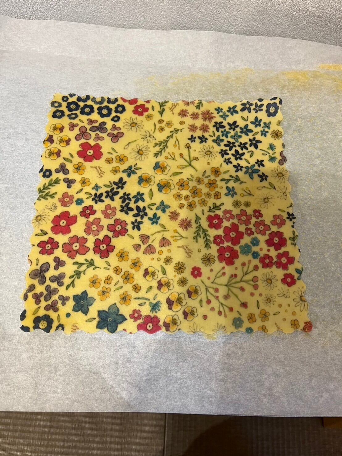 20×20cmのミツロウラップラップが約2枚できます。(生地の厚みによって誤差があります)