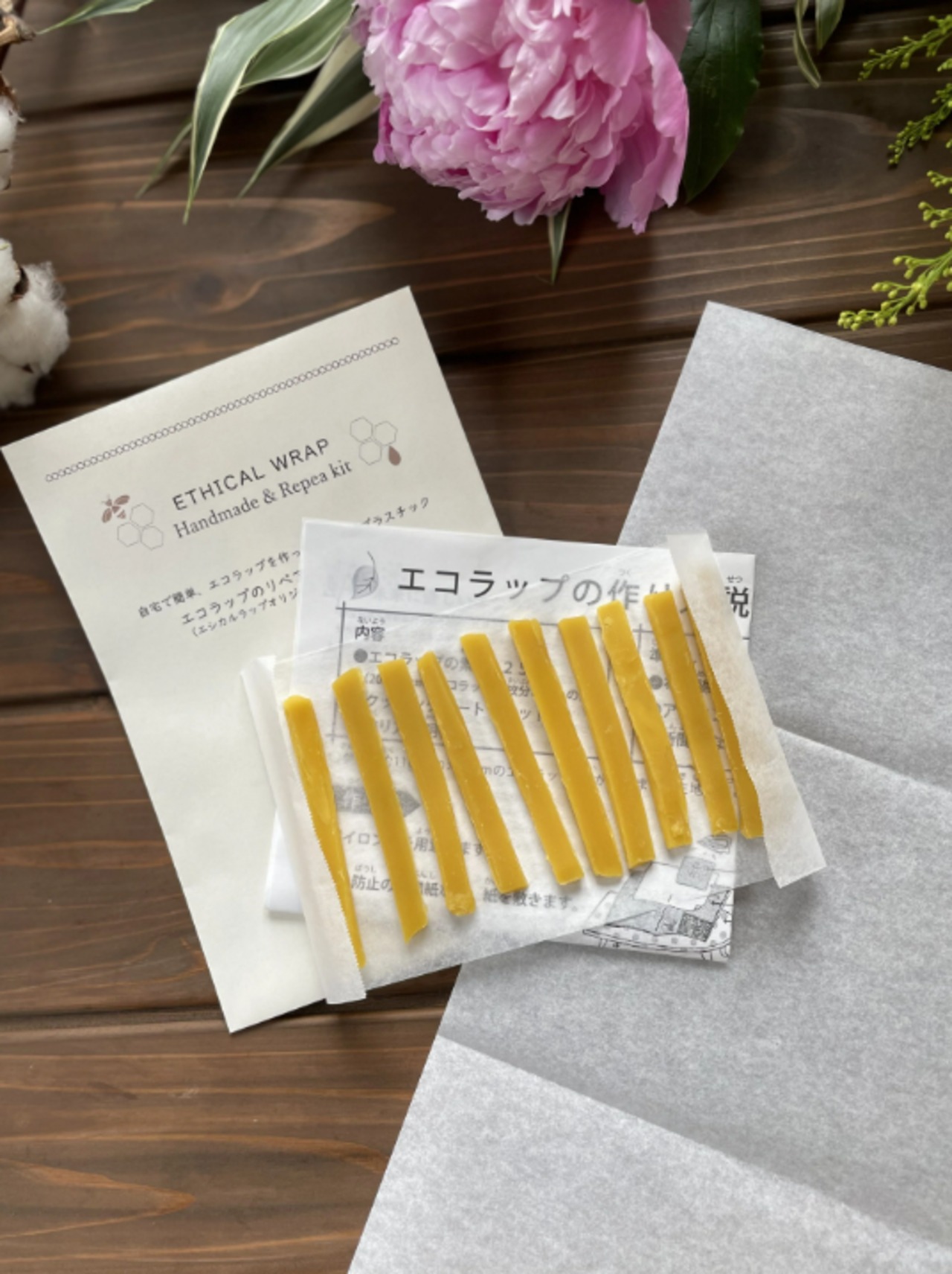 プラごみが出ない、環境や健康に優しいミツロウラップをご自身のお好みの生地、サイズで簡単に手作りできる、エシカルラップオリジナルブレンドのエシカルラップの素です。